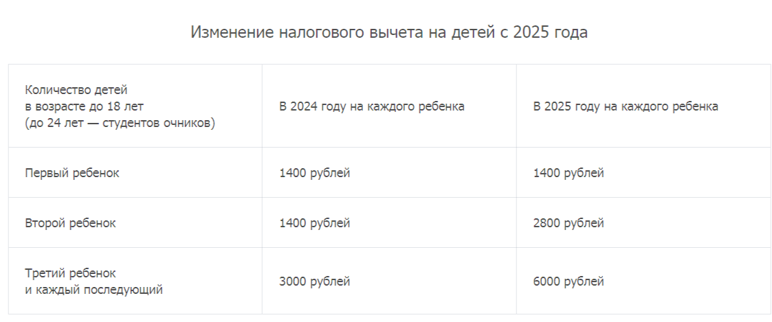 Размеры вычетов также увеличатся, но только для второго и последующих детей.
